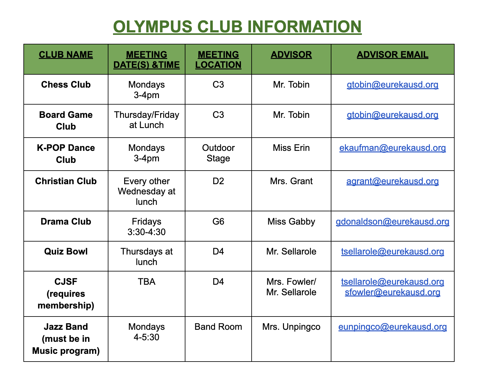 Olympus Club Information